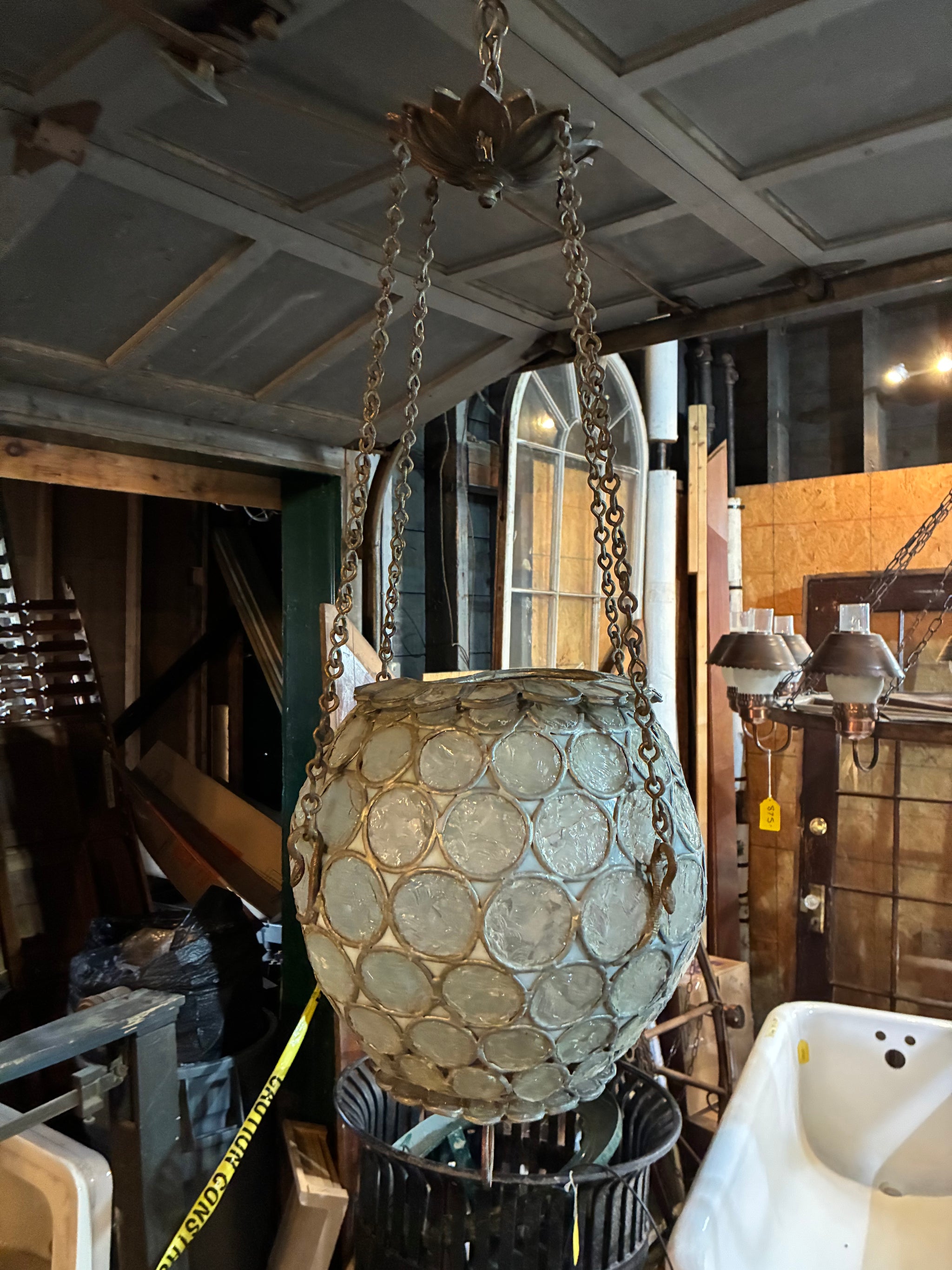 Hanging leaded globe - overall 35" tall and 16" across